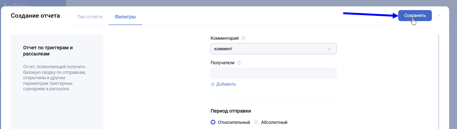 После настройки фильтров отчета нажимаем кнопку “Сохранить”, которая запускает формирование отчета.