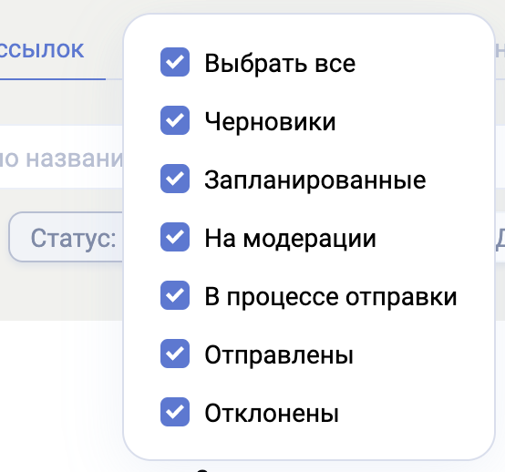 Статус — фильтрация по статусу рассылки.