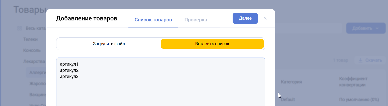 Загрузка товаров в личный кабинет