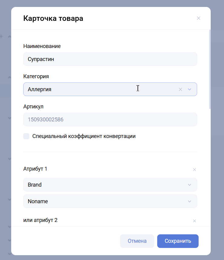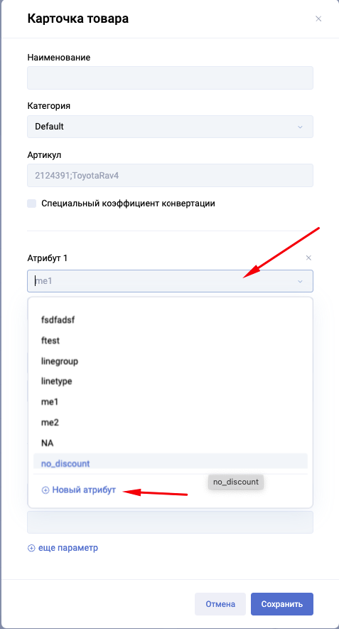 Атрибуты товара