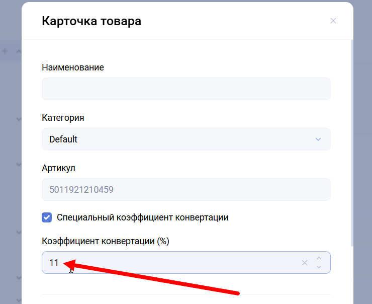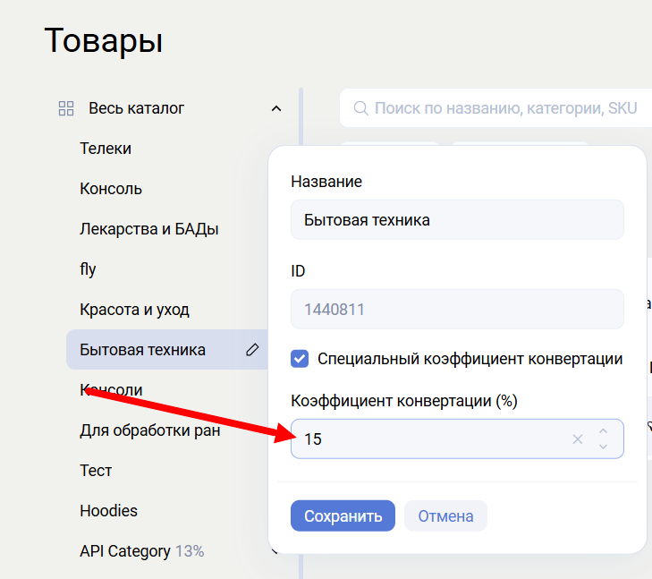 Коэффициент конверсии определяет процент стоимости товара, возвращаемый пользователю в виде баллов («кешбэк»).