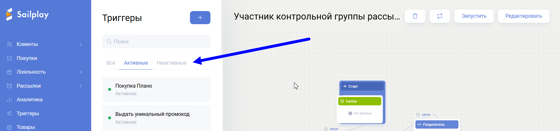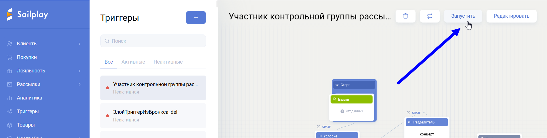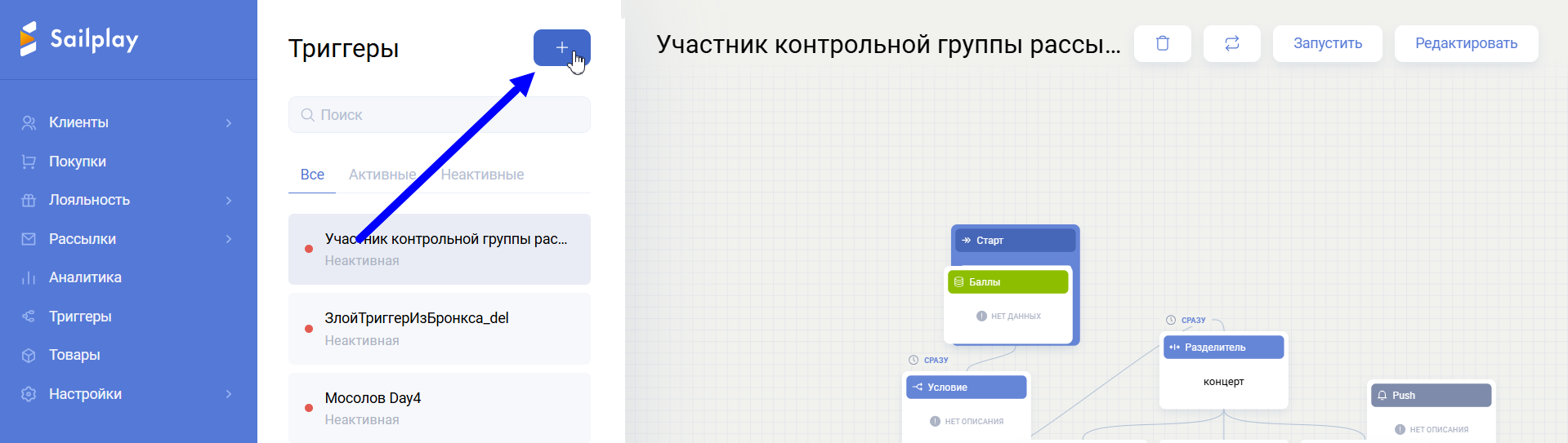 Триггер – это цепочка автоматизированных действий, посредством которой партнер взаимодействует с клиентами. Запуск цепочки происходит при присвоении клиенту определённого тега.