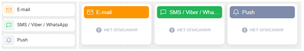 Email, SMS/Viber/WhatsApp, Push